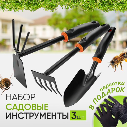 Набор садовых инструментов 3 предмета садовый инвентарь, перчатки