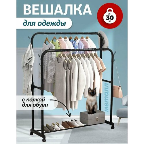 Вешалка напольная на колесах для одежды (черная)