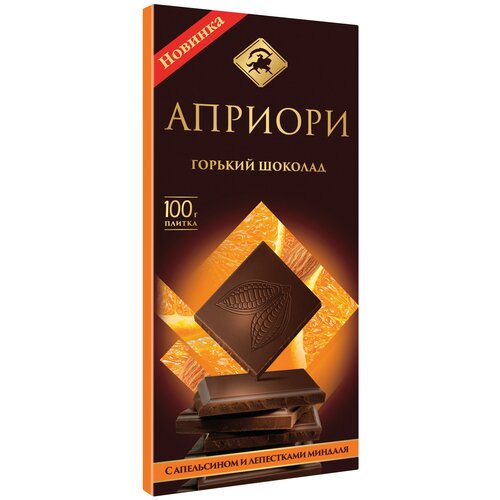 Шоколад Априори горький с цукатами апельсина и лепестками миндаля, 100 г