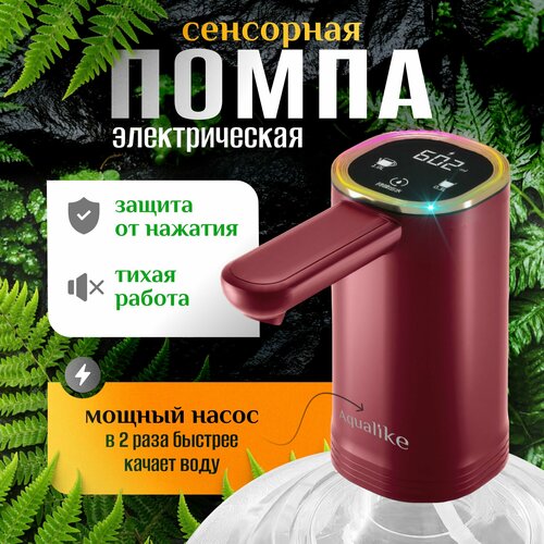 Помпа электрическая для воды сенсорная на бутыль 19л с двойным насосом красная Aqualike