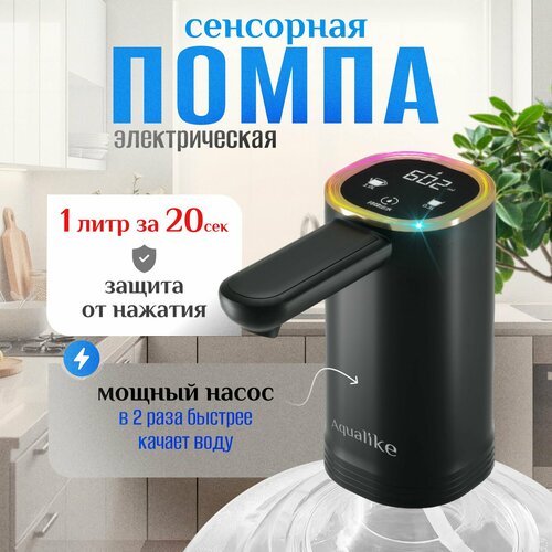 Помпа электрическая для воды сенсорная на бутыль 19л с двойным насосом черная Aqualike
