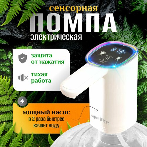 Помпа электрическая для воды сенсорная на бутыль 19л с двойным насосом молочно-белая Aqualike