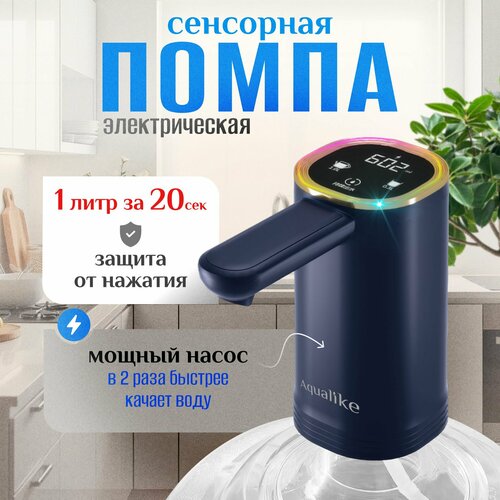 Помпа электрическая для воды сенсорная на бутыль 19л с двойным насосом синяя Aqualike