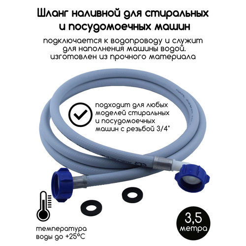 Шланг заливной 3,5м для стир. маш. аквалайн