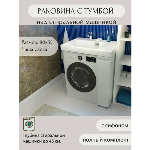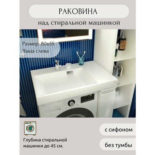 Раковина AQUAphonia Блюз 80х55 Л/над стиральной машиной