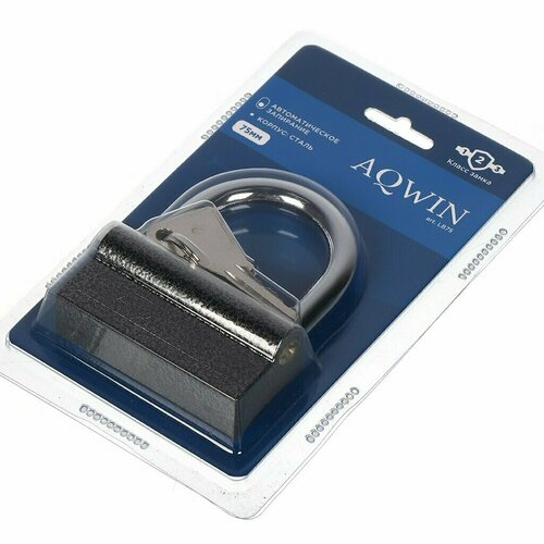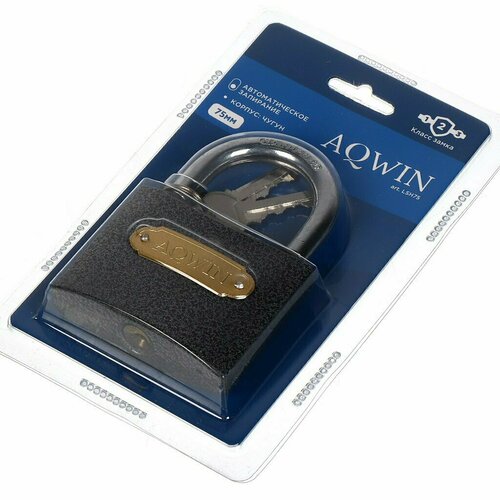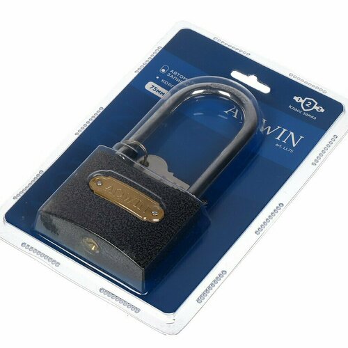 Замок навесной Aqwin, LL75, блистер, навесной, цилиндровый, 75 мм, с удлиненной дужкой, 3 ключа