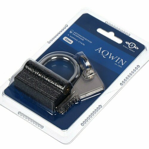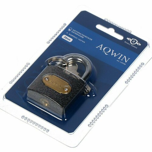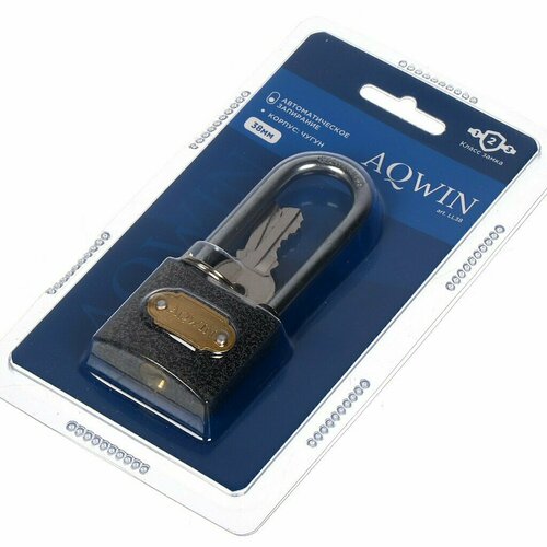 Замок навесной Aqwin, LL38, блистер, навесной, цилиндровый, 38 мм, с удлиненной дужкой, 3 ключа