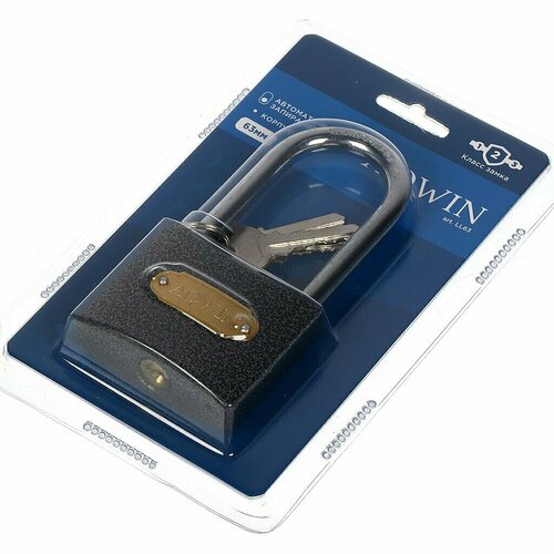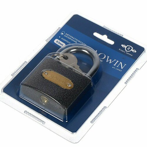 Замок навесной Aqwin, LL63, блистер, навесной, цилиндровый, 63 мм, с удлиненной дужкой, 3 ключа