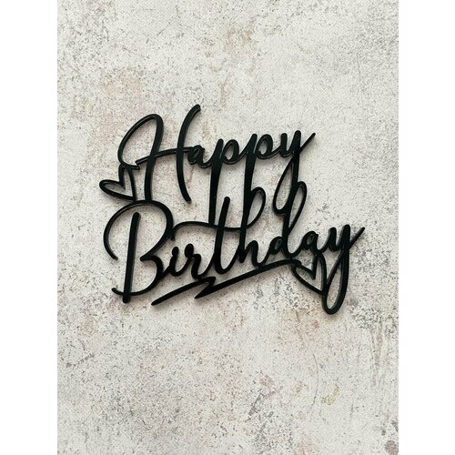 Топпер на торт С днем Рождения "Happy Birthday" набор из 10шт 100x53мм черный белый