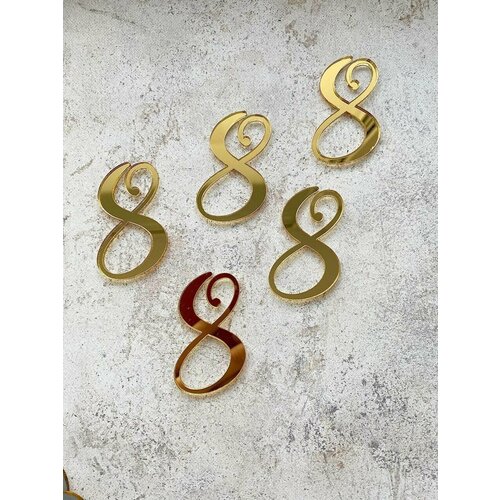 Золотая цифра 8 топпер для торта 10шт 45х45мм