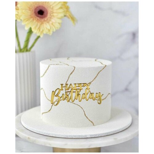 Топпер для Happy birthday С днем рождения золото 2шт и серебро 1 шт 100х50мм 3шт