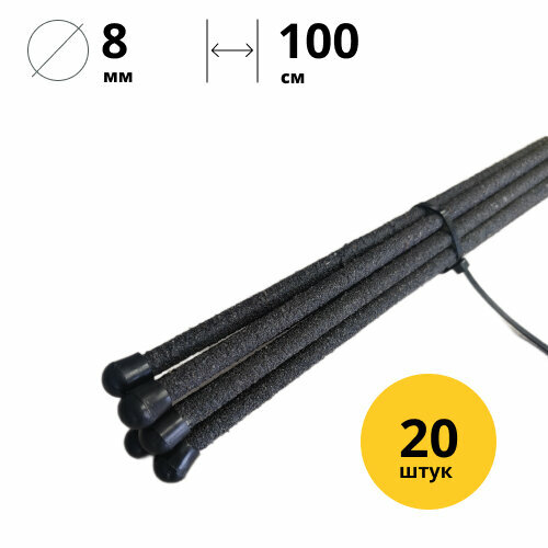 Колышки садовые стеклопластиковые, 8 мм, 1 м, 20 штук, черные