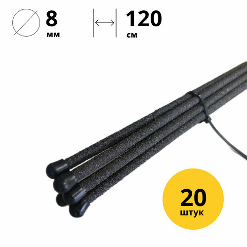 Колышки садовые стеклопластиковые, 8 мм, 1,2 м, 20 штук, черные