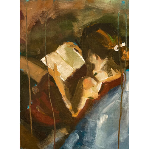 Картина маслом «За чтением книги из серии «любовь» 50х60 на холсте