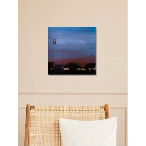 Картина на стену для интерьера в гостиную, в спальню В ночи 20х20см на холсте, ручная работа