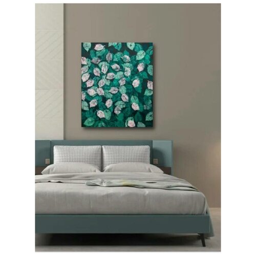 Картина на стену для интерьера в гостиную, в спальню Листья 50х60 см на холсте, ручная работа