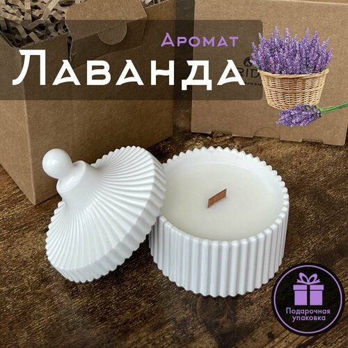 "Лаванда" ART FRIDAY Свеча ароматическая, Свеча с деревянным фитилем, Свеча декоративная, 40 часов горения