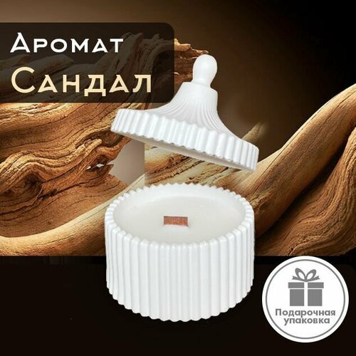 "Дерево сандала " ART FRIDAY Свеча ароматическая, Свеча с деревянным фитилем, Свеча декоративная, Ароматическая свеча для дома, 40 часов горения