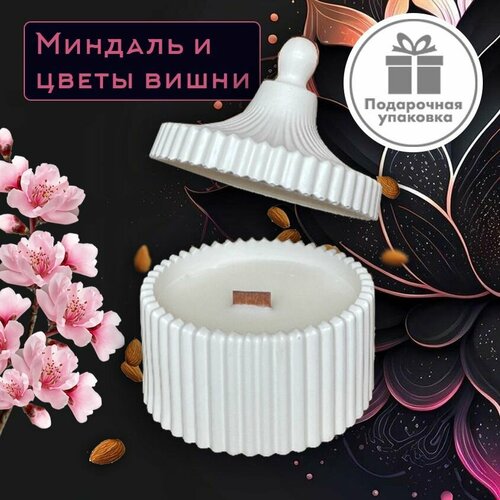 "Цветы вишни И миндаля" ART FRIDAY Свеча ароматическая, Свеча с деревянным фитилем, Свеча декоративная, Ароматическая свеча для дома, 40 часов горения