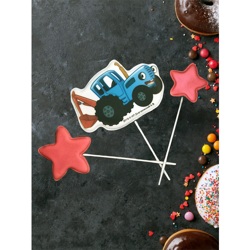 Набор имбирных пряников Синий трактор и звездочки(3шт) Топпер в торт, Украшение для торта