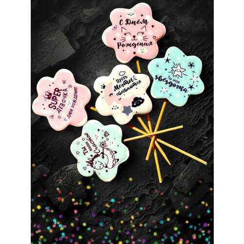 Набор имбирных пряников С днем рождения для девочки 5 шт
