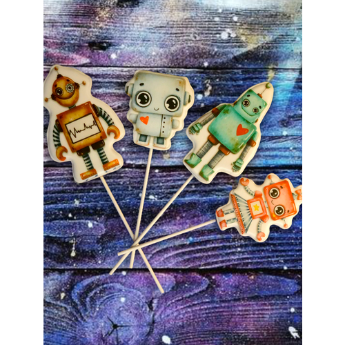 Имбирный пряник Робот, набор пряников Роботы, Пряник в торт, Топпер украшение на торт, Пряники на торт для мальчиков
