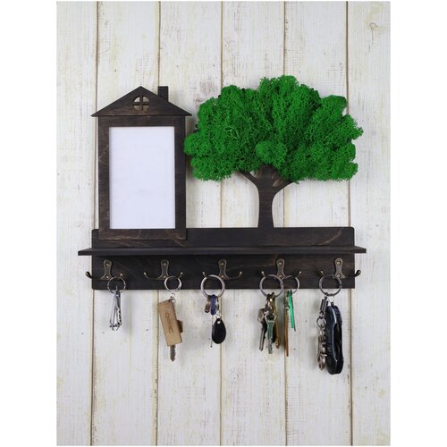 Настенная ключница ArtXL с полкой фоторамкой и мхом