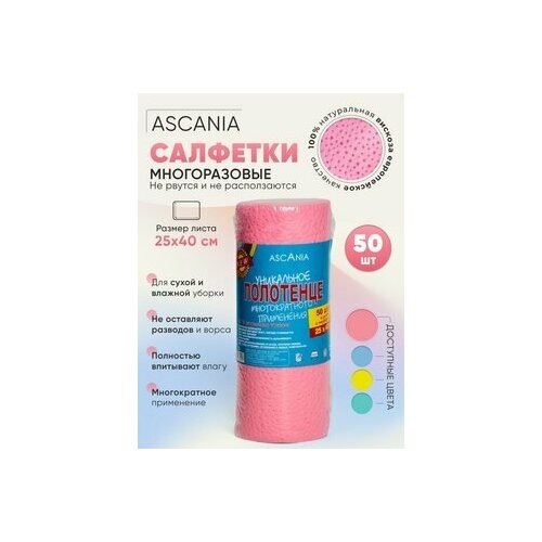 Ascania Полотенца универсальные нетканые Ascania «Многократного применения», 25х40 см, 60 шт