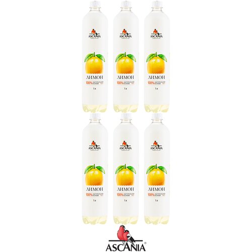 Газированный натуральный лимонад Ascania (Аскания), лимона, пластиковая бутылка 1 литр - 6 штук
