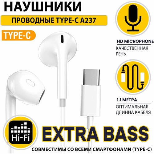 Наушники для телефона с разъемом Type-C / Гарнитура для Android / ASPOR A237 / Наушники проводные с Микрофоном