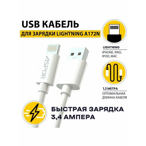 Кабель Aspor A101 USB-Lightning для быстрой передачи данных и зарядки смартфонов, планшетов 1 метр
