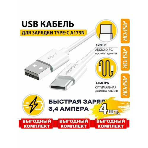 Зарядный кабель USB- TYPE-C. 3.0 A. ASPOR. 1м.