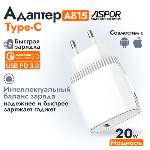 Сетевое зарядное устройство Aspor А815 20W Charger Type-C, белый