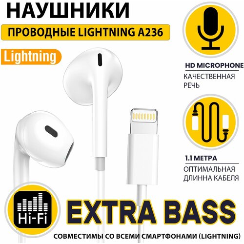 Наушники для телефона с разъемом Lightning / Гарнитура для IOS / ASPOR A236 / Наушники проводные с Микрофоном