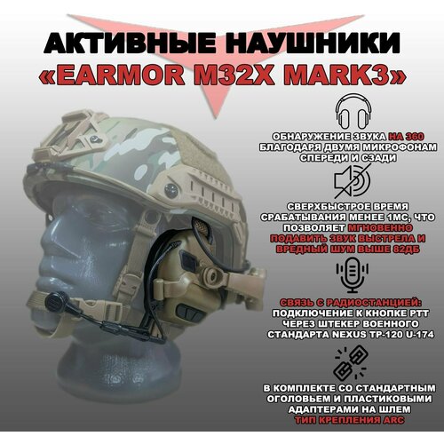 Активные стрелковые наушники Earmor M32X mark3 (Кайот)