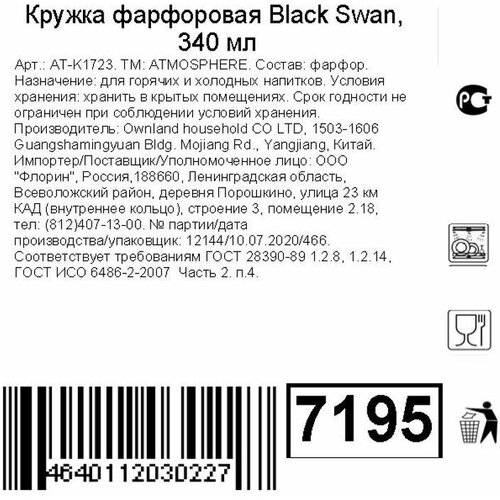 Кружка Atmosphere Black Swan фарфоровая, 340мл