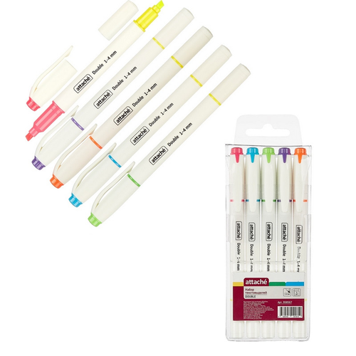 Attache Маркер выделитель текста Attache Double, 1-4мм, набор 6 цветов, 5 маркеров