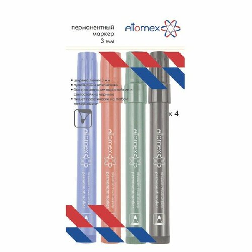 Маркер перманентный d Attomex набор 4шт зеленый/красный/синий/черный арт.5043504