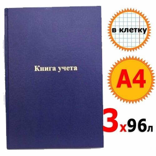 3 шт Книги учета "Attomex" A4 96 л в клетку, офсет 65 г/м , 90% белизна, твердая обложка
