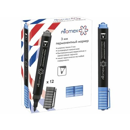 Маркер перманентный "Attomex" круглый корпус, пулевидный наконечник 3мм, синий 5043500 / набор 12шт