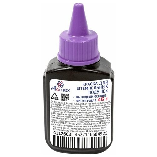 Краска Attomex для штемпельных подушек на водной основе 45г. фиолетовая / печати и штампы