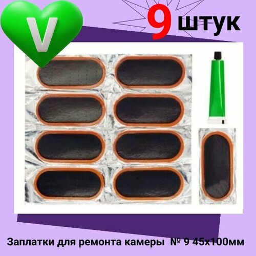 Латки для ремонта камер, комплект резиновых заплаток из 9 шт. 100х45 мм Ремкомплект для резины / Аптечка для велосипеда.