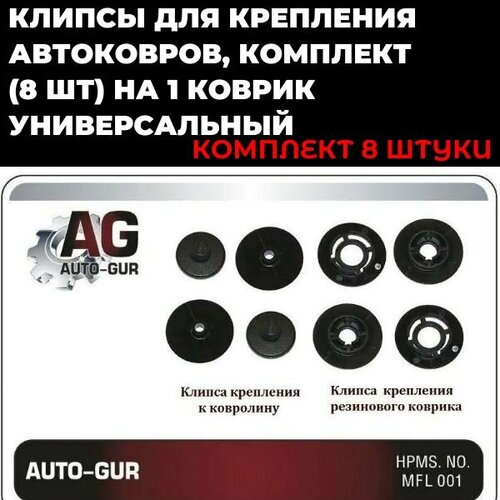 Клипсы для крепления автоковров, комплект (8 шт) на 1 коврик универсальный