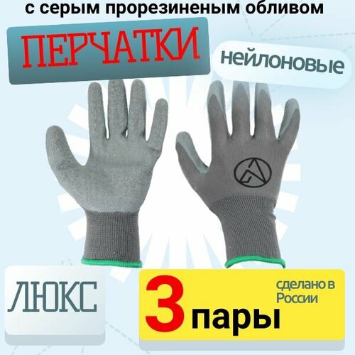 Перчатки Люкс нейлоновые 3 пары с серым обрезиненным обливом