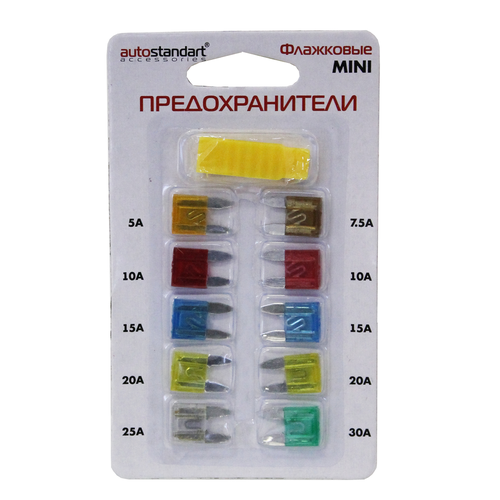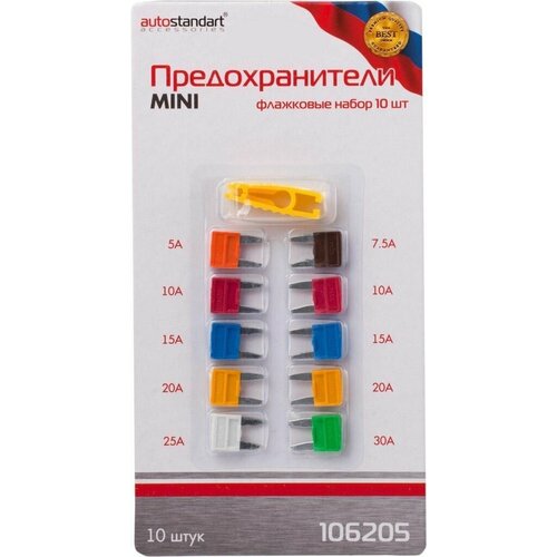Предохранители флажковые Low- Profile Mini (5-30А) 10шт в блистере, AutoStandart 106206 (Производитель: AutoStandart 106206)