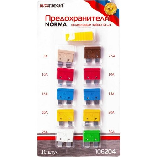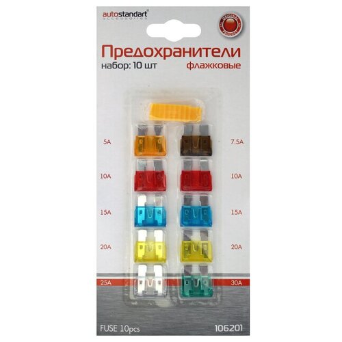 Предохранитель флажковый набор 5 -25 А с пинцетом 10 шт. Autostandart 1шт, 106201 (1 уп.)