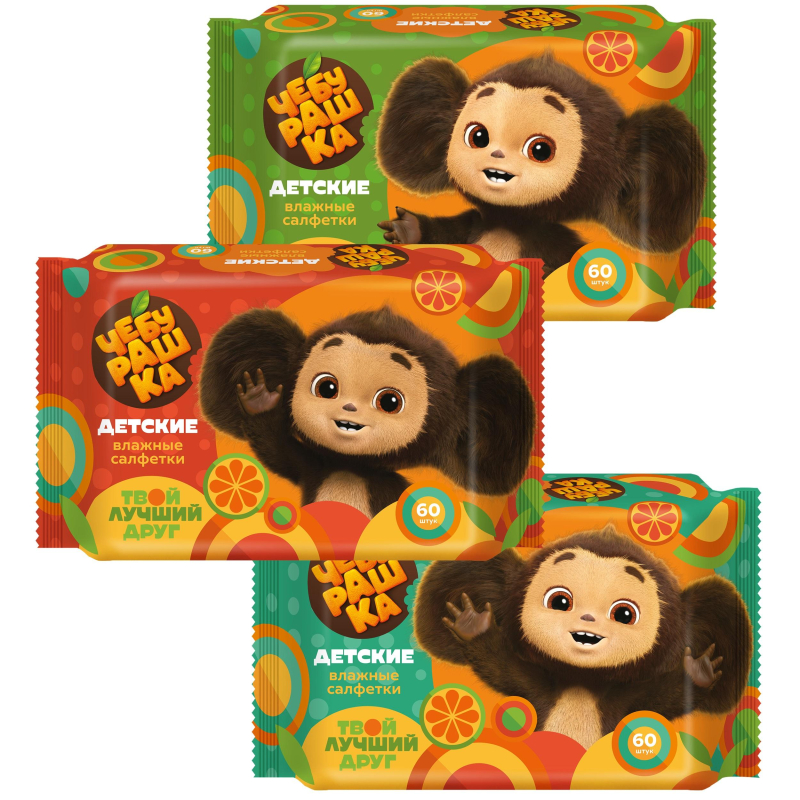Салфетки влажные Чебурашка детские, 60 шт 100057437800