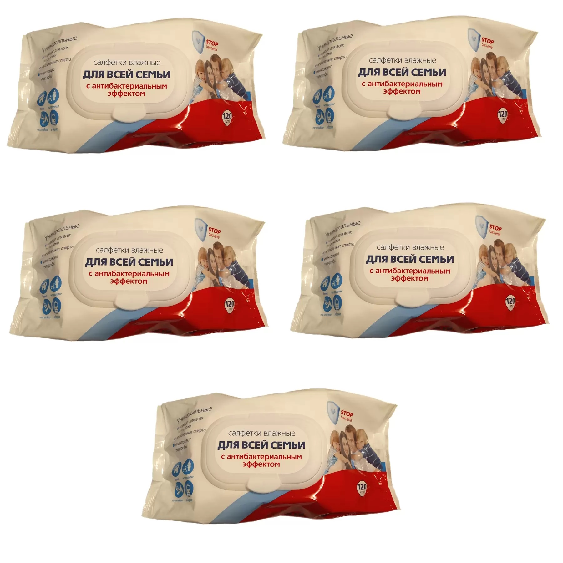 Салфетки влажные "Для всей семьи" с антибактериальным эффектом, с клапаном, 2 уп. по 120 шт. 102355061751