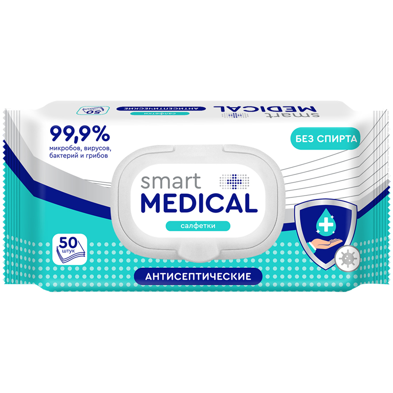 Салфетки антисептические влажные Smart Medical без спирта крышка-клапан 50шт 20 уп 100058755232