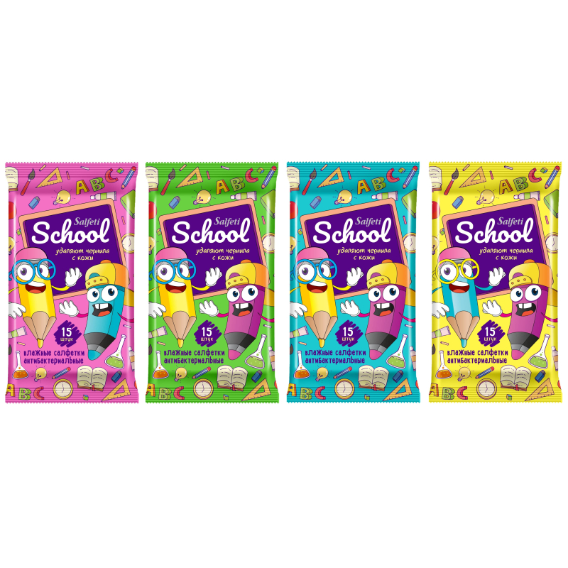 Салфетки влажные Salfeti School антибакт, для удаления чернил 15шт, (4шт.) 100058224738